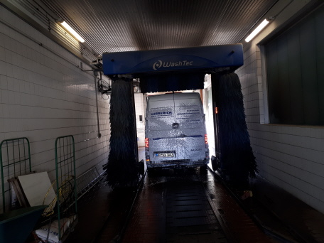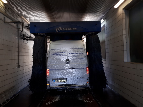 Textile Portalanlage für Transporter und Klein-LKW bis zu 8 Meter Länge 2.38 Meter Breite und 2,80 Meter Höhe. Die Waschanlage ist ausgerüstet mit neuester, modernster Technik wie Textilbürsten und Wasserrückgewinnung, verbesserte Lufttrocknung, auch geeignet für besonders breite oder tiefer gelegte Farhrzeuge.